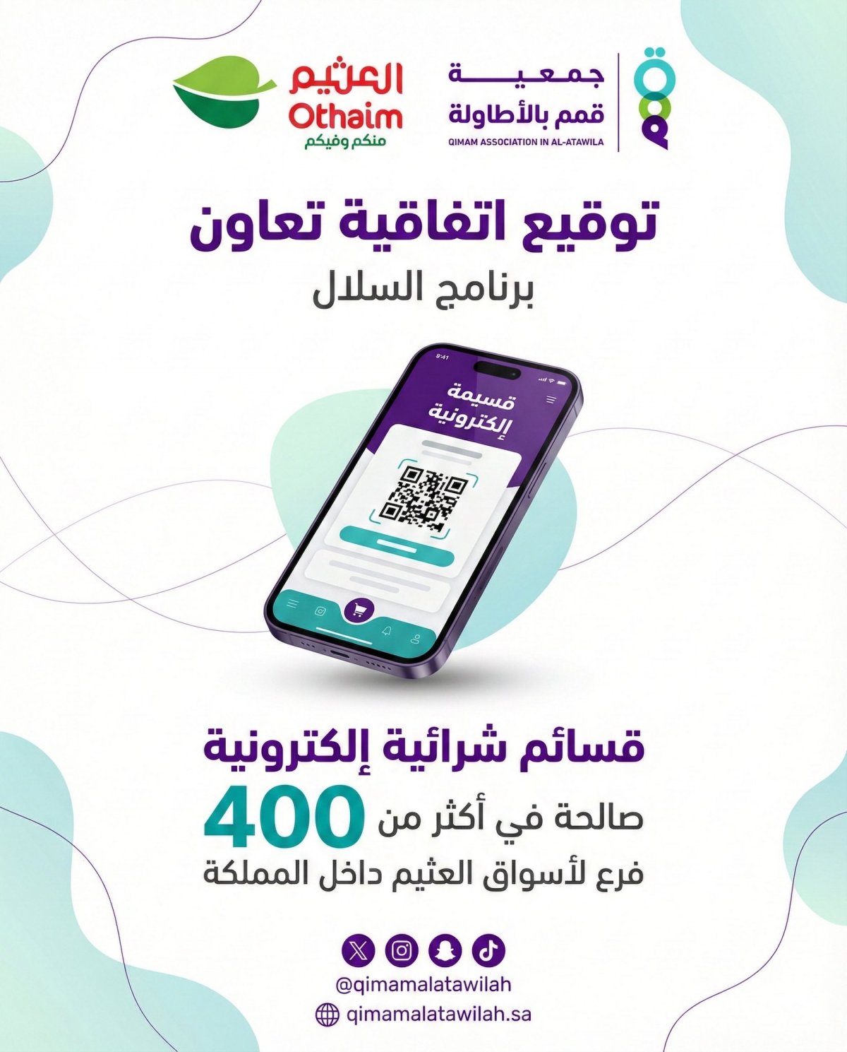 تم توقيع اتفاقية تعاون مع "أسواق العثيم" لإطلاق القسائم الشرائية الإلكترونية لبرنامج السلال الغذائية.
